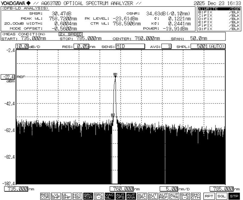 Is dé-óid léasair 760nm 10mW DFB do mhodúl braite ocsaigine O2 ná dé-óid léasair an-chomhleanúnach atá éifeachtach ó thaobh costais. Tá an sliseanna dé-óid léasair DFB pacáistithe i bpacáiste féileacán 14PIN caighdeánach tionscail séalaithe le TEC agus PD Tógtha i.