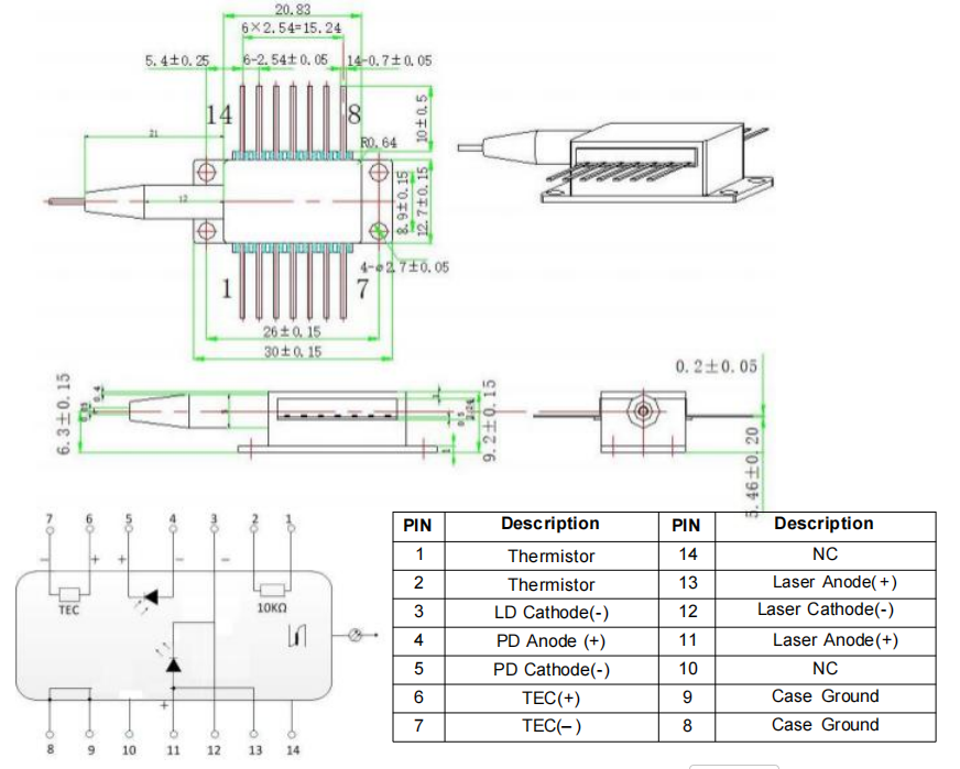 Pacáiste féileacán 14PIN de chaighdeán tionscail;