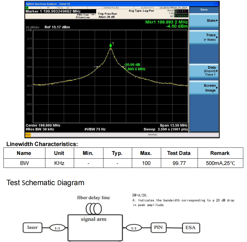 Optronics Boscasheol dé-óid léasair DFB caol-líne 1550nm, 100mW, 100kHz i bpacáiste féileacán 14-bioráin le rialú teochta CCE agus monatóireacht PD comhtháite. seotáirgeúsáideann struchtúr aiseolais dáilte, ag a bhfuil leithead iomlán ag FWHM de níos lú ná 100kHz agus SMSR níos mó ná 40dB. Tagann an tonnfhad 1550nm laistigh den "fhuinneog íseal-chaillteanais" den tionscal cumarsáide. Laghdaíonn a líneáil caol faoi bhun 100kHz agus SMSR níos mó ná 40dB go héifeachtach torann céime agus cur isteach mód ar tharchur comhleanúnach, rud a fhágann go bhfuil sé mar chroí-fhoinse solais do chumarsáid snáthoptaice ardluais, cianaistir.